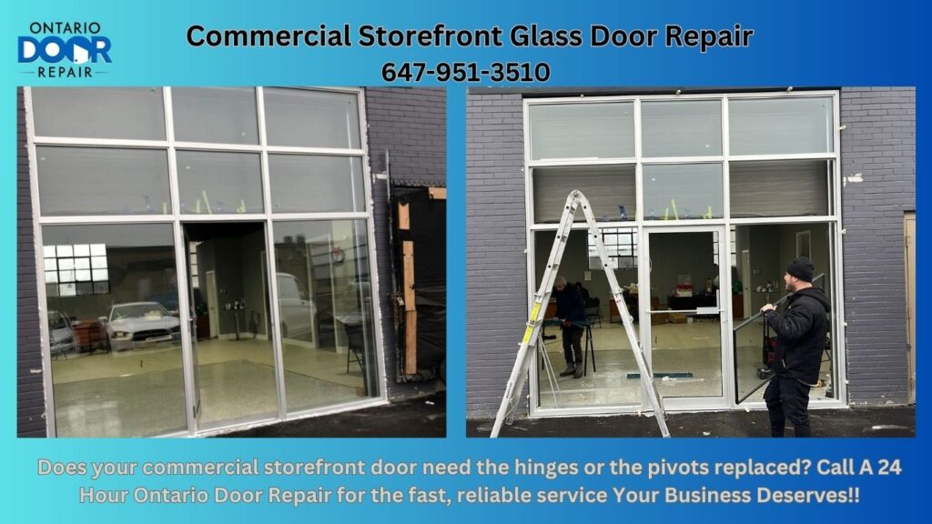Commercial Storefront Glass Door Repair, In the bustling city of Toronto, the appearance and functionality of a commercial storefront can significantly impact the success of a business. The first thing customers notice is the entrance, and a well-maintained glass door can make a strong, positive statement. At Ontario Door Repair, we understand the importance of a pristine and fully functional storefront glass door. That’s why we offer specialized repair services to keep your business looking its best and operating smoothly.